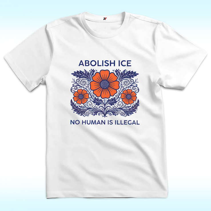 Framed with bold lettering and delicate floral artwork, the message “No Human Is Illegal” places humanity at the center of the conversation. The contrast between softness and defiance turns the Abolish Ice No Human Is Illegal Shirt into more than just apparel—it becomes a wearable statement of solidarity, justice, and belief in dignity for all.