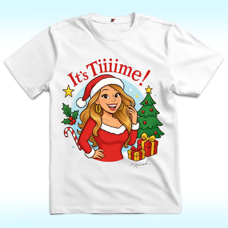As soon as the first snowflake falls and the twinkle lights go up, you know exactly what time it is—Mariah Season. This All I Want For Christmas Is Maria Carey Shirt captures that unmistakable moment when the Queen of Christmas takes her rightful place at the top of every playlist. Featuring a festive cartoon of Mariah Carey in a red Santa outfit surrounded by holly, gifts, and a Christmas tree, it proudly shouts, “It’s Tiiime!”—because let’s be honest, the holidays don’t officially start until her voice hits that first high note.