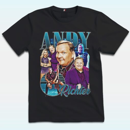 Step into the spotlight with this dazzling “Andy Richter & Emma Slater Dancing With The Stars” shirt. Featuring a vibrant collage of Andy and his dance partner Emma captured in their most iconic moves, the design bursts with personality and retro glam. Bold block lettering spells out “ANDY” like a Broadway marquee, while “Richter” flows beneath in elegant script, grounding the composition. With vivid purples, teals, and theatrical lighting effects, this “Andy Richter & Emma Slater Dancing With The Stars” Shirt perfectly celebrates Andy’s unforgettable run on the dance floor—where comedy met choreography in the most delightful way.