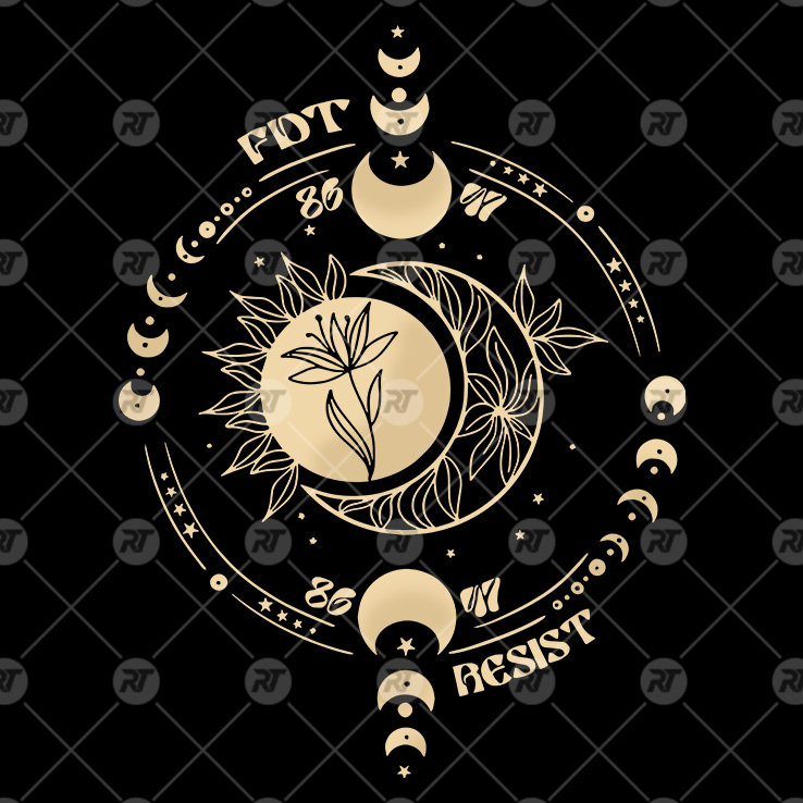 Anti Fascist FDT Celestial Moon Political Shirt blends political resistance with mystical symbolism, channeling imagery inspired by the film Wicked Moon. At its core, it features a celestial design with lunar phases and floral motifs, representing cycles of transformation and resilience. Phrases like “FDT,” “Resist,” “Be In,” and “8647” reinforce a clear anti-authoritarian and anti-Trump stance.