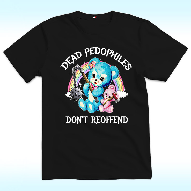 Through high-impact typography, bright color accents, and balanced top-and-bottom text placement, the design clearly communicates a demand for accountability, stronger safeguards for children, and a justice system that prioritizes prevention and protection. More than aesthetic, the Dead Pedophiles Don’t Reoffend T Shirt is meant to start conversations and reinforce the urgency of defending vulnerable lives.