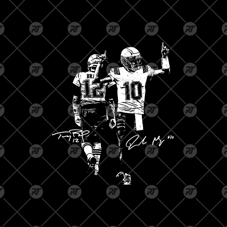 Built on legacy and the promise of what comes next, the Drake Maye & Tom Brady With Signature Shirt captures a rare passing-of-the-torch moment for New England Patriots fans. The design brings together two quarterbacks from different eras—Tom Brady, the standard of greatness, and Drake Maye, the symbol of a new chapter—standing side by side as if time itself paused for the handoff.