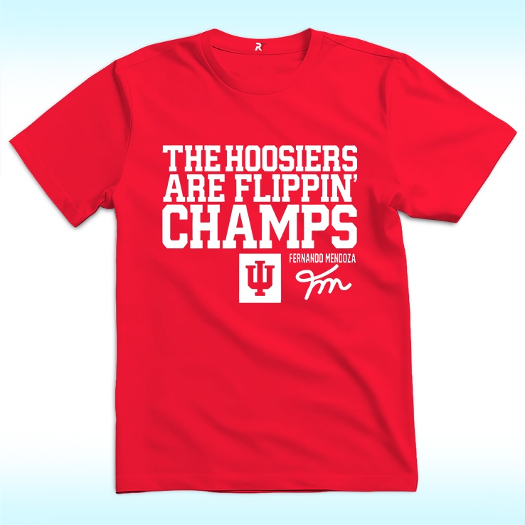 A burst of championship pride leaps off this bright red “Fernando Mendoza The Hoosiers Are Flippin’ Champs” Shirt, built around the bold declaration: “The Hoosiers Are Flippin’ Champs.” At the center, the Indiana logo sits beside quarterback Fernando Mendoza’s signature, turning the design into a celebration of both team achievement and individual leadership.