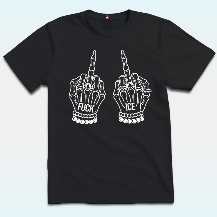 This Fuck Ice Middle Finger Shirt confronts the viewer with stark, unflinching imagery: two skeletal hands raised in defiance, each middle finger extended without apology. The words “Fuck” and “ICE” stamped across the knuckles transform the design into a blunt political statement, openly rejecting U.S. Immigration and Customs Enforcement. Blending dark humor, protest art, and punk-inspired symbolism, the shirt channels anger, resistance, and solidarity into a single, striking visual. The Fuck Ice Middle Finger Shirt is made for those who believe clothing can be a form of protest—and who aren’t afraid to wear their stance loudly and unapologetically.
