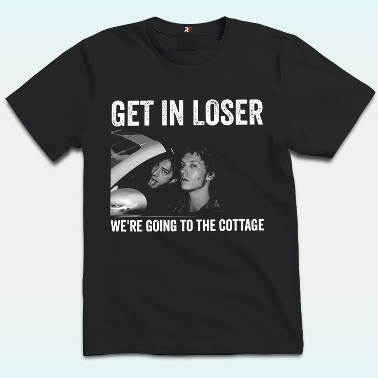 With its high-contrast monochrome photo, gritty vintage-style typography, and clean centered composition, the Get In Loser We’re Going To The Cottage Shirt blends meme culture with carefree travel vibes—perfect for anyone who appreciates humor, friendship, and the spirit of an unplanned escape.