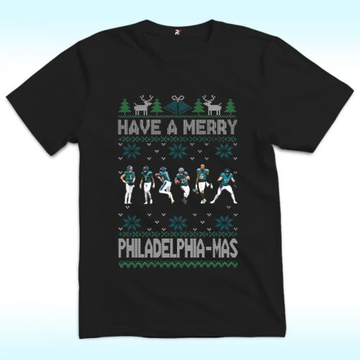 Celebrate the season with gridiron cheer in the Have A Merry Philadelphia Christmas Shirt! This festive design blends Christmas magic with the firepower of the Philadelphia Eagles. Featuring some of the team’s biggest stars in full uniform, the shirt is styled like a classic holiday sweater—complete with snowflakes, reindeer, and evergreen trees for a cozy, spirited touch.