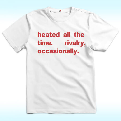 With bold red text set against a white background, the minimalist design keeps the message sharp, witty, and instantly recognizable to anyone who understands the reference. The “Heated All The Time, Rivalry Occasionally” Shirt is a clean, confident piece made for fans who know that in this story, rivalry is occasional—but heat is constant.