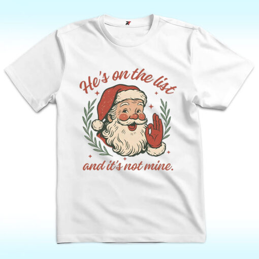The “He’s On The List And It’s Not Mine” shirt features a jolly St. Nick giving a cheeky wink and a knowing nod. It’s the perfect tee for those who want to stay festive while throwing just a little playful shade. Whether it’s your sibling, coworker, or that neighbor with the inflatable reindeer disaster—Santa knows, and you’re staying innocent.