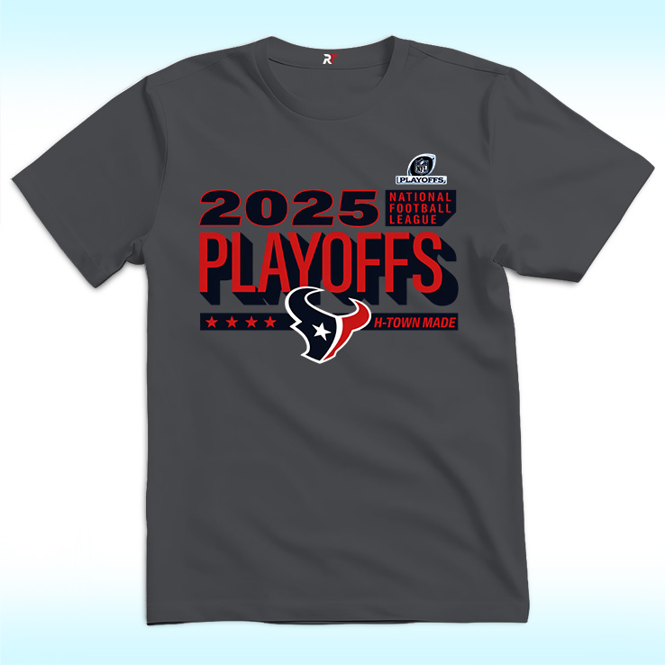 The “2025 Playoffs” message captures a team that hasn’t finished the job yet, but firmly controls its path forward. Anchored by “H-Town Made,” the design connects on-field performance with hometown resilience and belief. Set against the pressure of the National Football League, the Houston Texans 2025 NFL Playoffs Ready Shirt closes with a sense of momentum—Houston firmly in the mix, with postseason football well within reach.