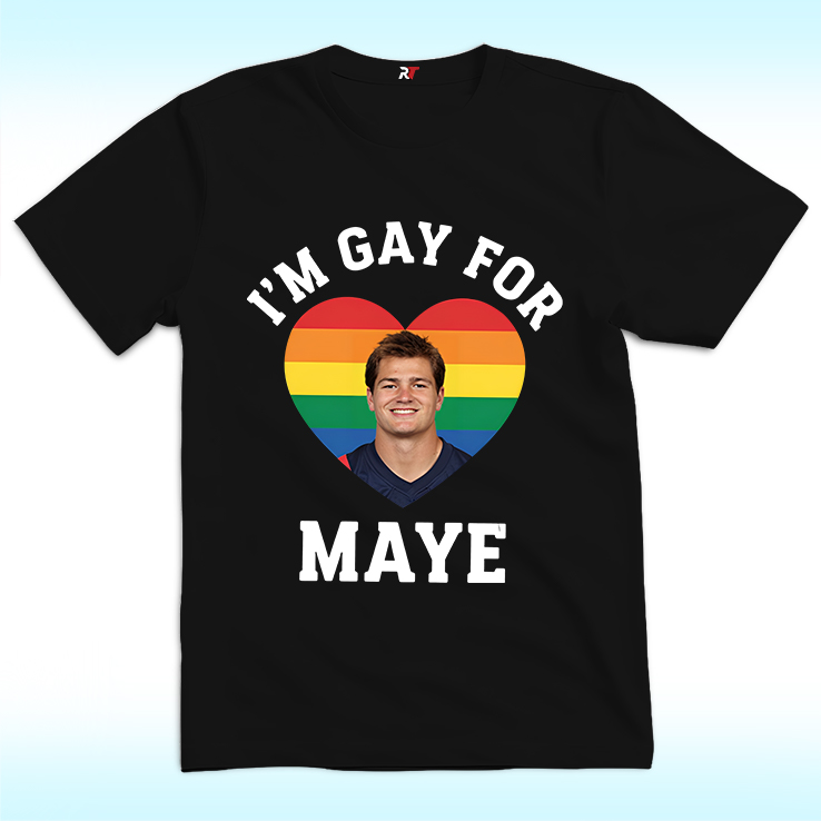 This “I’m Gay For Maye” Shirt blends heart, humor, and fandom into one bold, cheeky statement. Featuring a rainbow heart alongside the face of New England Patriots quarterback Drake Maye, it playfully mixes football pride with a message of admiration and inclusivity. Whether you’re part of the LGBTQ+ community or simply fully invested in the Maye hype train, this “I’m Gay For Maye” Shirt celebrates passion without apology. It’s camp, it’s sporty, and it’s impossible to ignore—just like Maye himself.