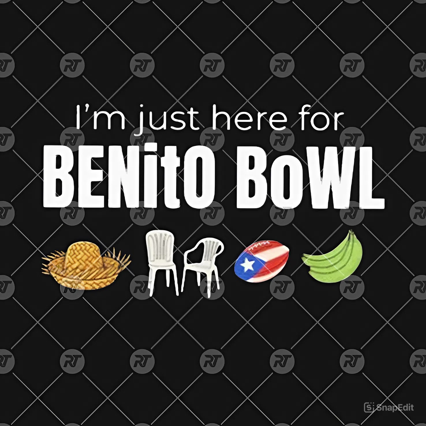 “I’m Just Here For Benito Bowl” Shirt celebrates the true MVPs of the 2026 Puerto Rico Football Show—the ones who came for the vibes, the rhythms, and, of course, Benito himself. With bold lettering and a playful lineup of emojis (think straw hats, plastic chairs, plantains, and the Puerto Rican flag), this tee captures what really brings the crowd together: music, flavor, and pure joy in the moment.