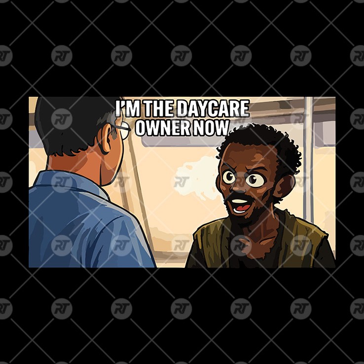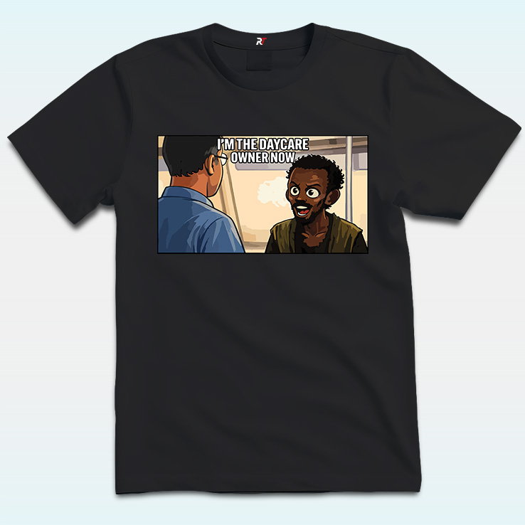 The illustration responds with humor and exaggeration, capturing the confusion and scrutiny that followed. A bold character steps confidently into an unexpected role, turning uncertainty into satire. By reframing a serious situation through irony, the I’m The Daycare Owner Now Minnesota Somali Pirate Funny Shirt delivers its message clearly and directly—punctuated by the blunt closing line: “I’m the daycare owner now.”