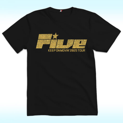 Celebrate the legendary comeback of British boy band Five with the Keep on Movin 2025 Tour Shirt — available in two designs made for true fans and collectors alike.