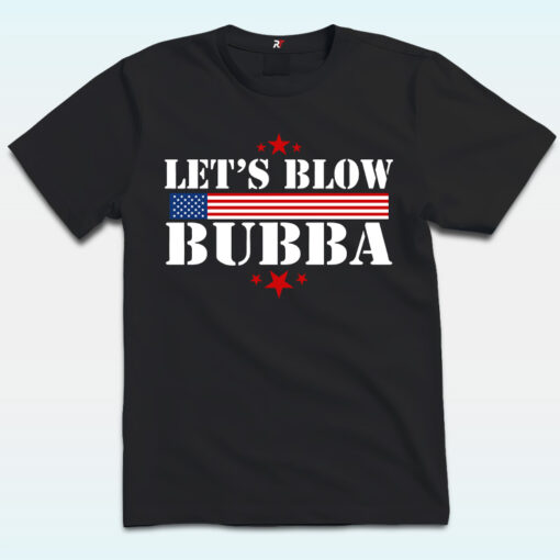 This provocative Let’s Blow Bubba Shirt doesn’t tiptoe around controversy—it charges straight into it. “Let’s Blow Bubba,” printed in bold military-style lettering beneath an American flag motif, delivers a sharp satirical punch aimed at Donald Trump, wrapped in layers of red, white, and blue irony.