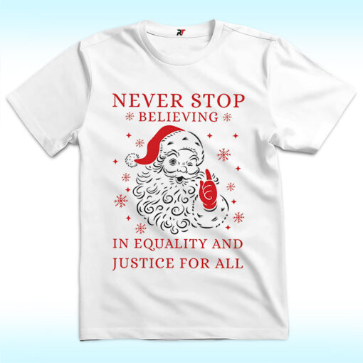 Never Stop Believing in Justice For all Santa Christmas Shirt, Anti Trump