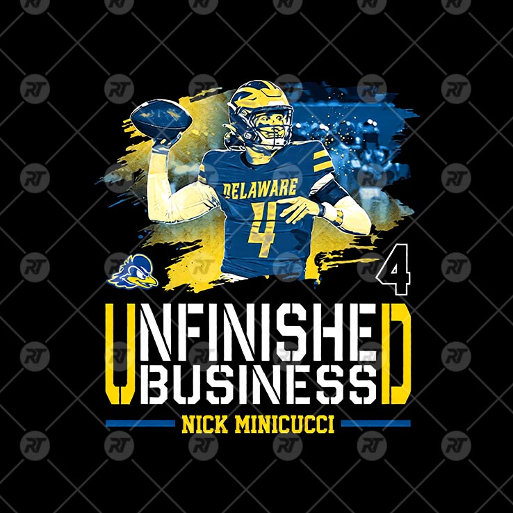This Nicholas Minicucci Unfinished Business Shirt celebrates Nicholas Minicucci, the quarterback of the Delaware Fightin’ Blue Hens, and the relentless mindset that defines his game. Built around themes of leadership and determination, the design tells the story of a player still chasing what comes next.