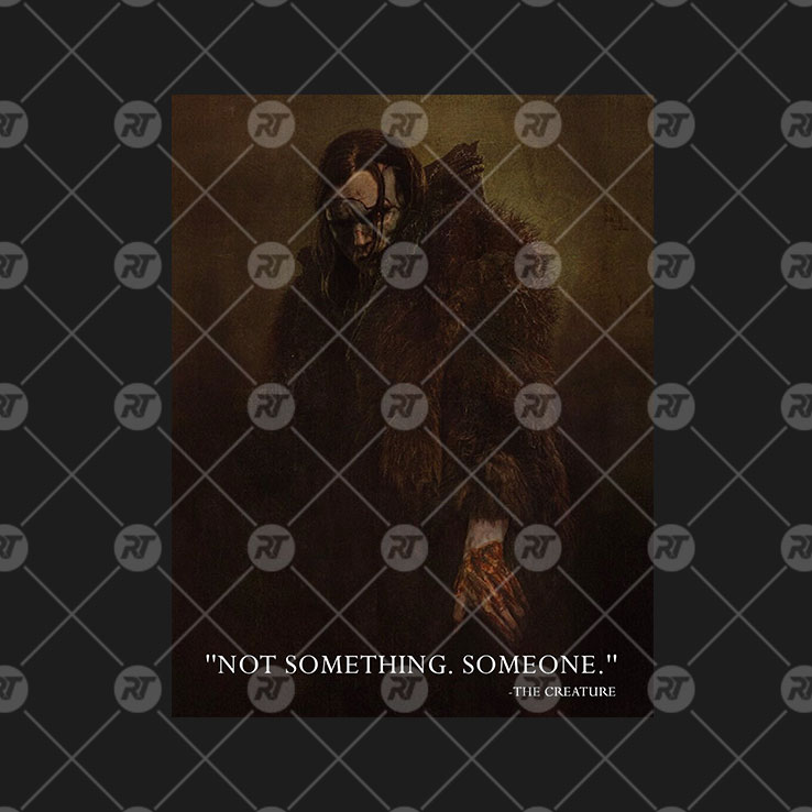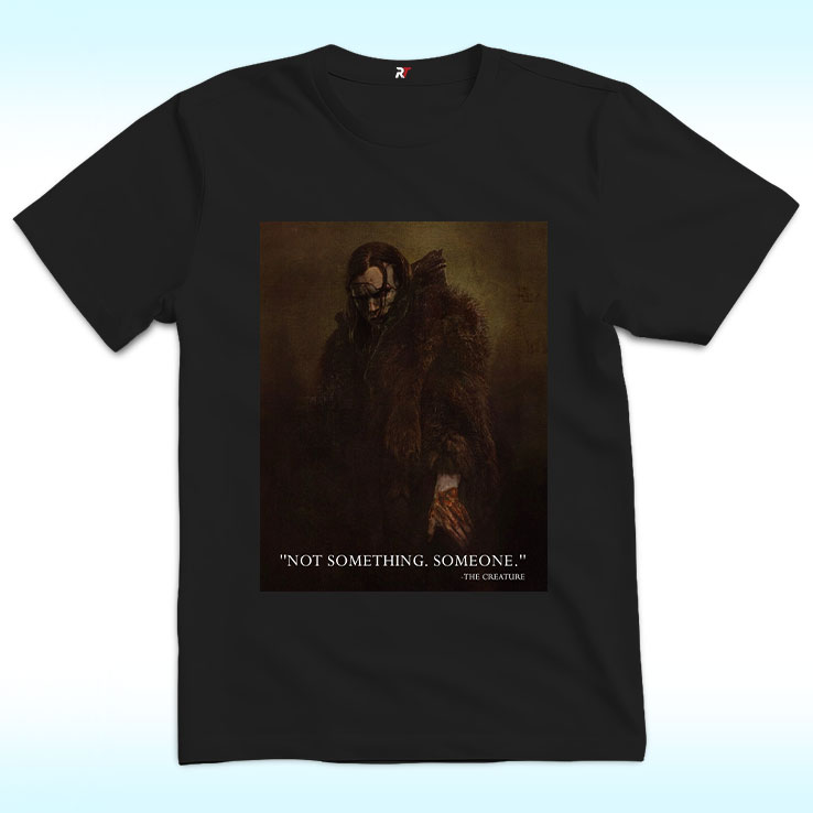 This hauntingly poetic “Not Something, Someone” Shirt draws inspiration from Guillermo del Toro’s Frankenstein (2025), featuring a striking portrait of The Creature cloaked in shadow and sorrow. Centered on the shirt is a dark, painterly image that captures both tragedy and quiet strength. Beneath it, the quote “Not something. Someone.” appears in a classic serif font, giving voice to the Creature’s longing for recognition.