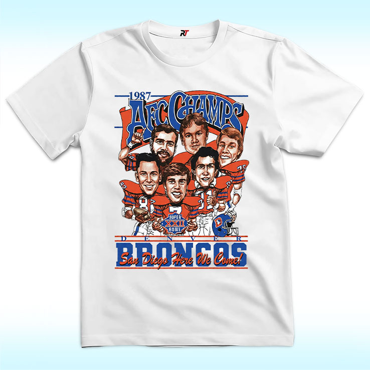 San Diego Here We Come Shirt, Denver Broncos AFC Champs 1987
