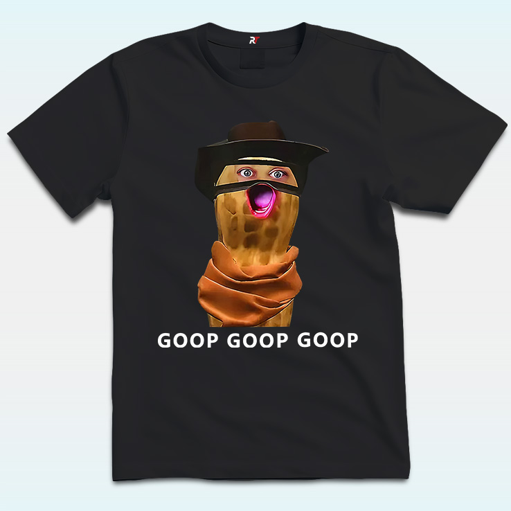 This “The Burnt Peanut GOOP” shirt spotlights The Burnt Peanut — a wide-eyed, scarf-wrapped peanut sporting a cowboy hat and yelling the unforgettable phrase: “GOOP GOOP GOOP!” It’s an instant classic for fans of surreal internet humor and deep-cut meme culture.