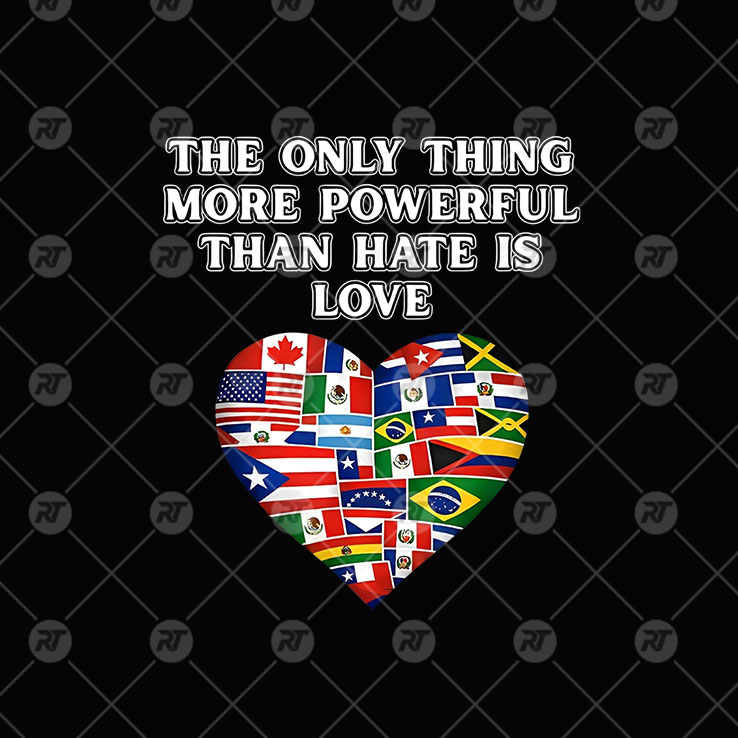 Created with the hope of inspiring peace across nations, this The Only Thing More Powerful Than Hate Is Love Shirt carries a simple but powerful message: love is stronger than hate. The bold white text, “The Only Thing More Powerful Than Hate Is Love,” stands prominently above a vibrant heart formed from the flags of countries across the Americas—from the United States and Canada to Mexico, Brazil, Jamaica, Argentina, and beyond.
