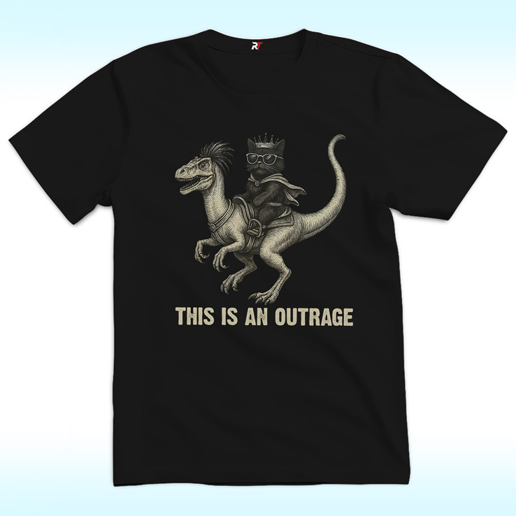 If you’ve ever owned a cat, you know the attitude: dramatic, demanding, and always in charge. This hilarious “This Is An Outrage” Shirt captures that exact energy with a crowned, sunglasses-wearing cat riding a dinosaur like it’s on a mission to conquer the world—or at least your living room. Designed for cat lovers who embrace the chaos and comedy of feline royalty, this tee turns every tantrum into a fashion statement. The “This Is An Outrage” Shirt is the perfect blend of regal kitty attitude and absurd adventure—ideal for anyone who knows that when a cat is offended, the whole kingdom hears about it.