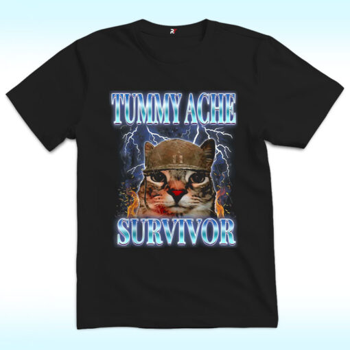 Whether you’ve powered through a questionable gas-station snack or indulged in one too many slices of pizza, this design finds the humor in minor misery. With its over-the-top visuals and the cat’s dead-serious expression, the Tummy Ache Survivor Cat Meme Shirt transforms a personal crisis into a meme-worthy moment of triumph.