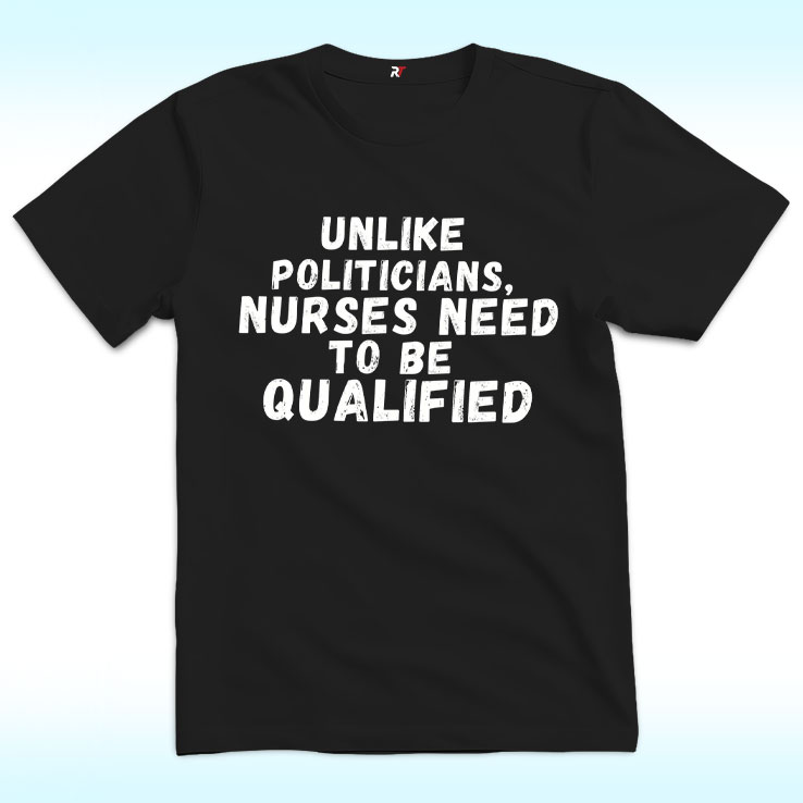 It’s for the nurses who earned every credential, passed every exam, and save lives daily—not with speeches, but with precision, training, and real expertise. Wear the Unlike Politicians Nurses Need To Be Qualified Shirt with pride. Wear it with purpose. And let the world know: you can’t fake competence with a campaign slogan.