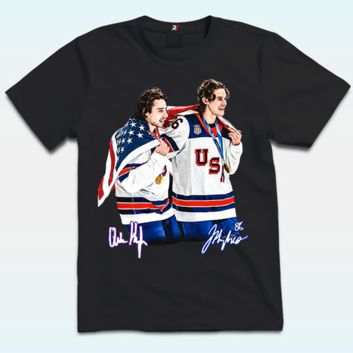 On the biggest stage in the world, family stood side by side for history. This USA Gold Medal Hockey Champion Jack Hughes Quinn Hughes Shirt captures the unforgettable moment when brothers Jack Hughes and Quinn Hughes celebrated 2026 Winter Olympics glory together, ending a 46-year wait for American men’s hockey gold. Draped in the American flag, the Hughes brothers stood at the center of Team USA’s long-awaited triumph.