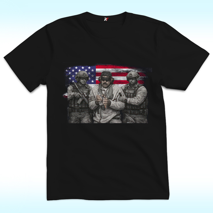 At the center of this Venezuela Maduro Capture 2026 Shirt is Nicolás Maduro, portrayed in a stark, unfiltered illustration that immediately commands attention. This shirt is intended as a statement of solidarity with Venezuela and a direct protest against U.S. military intervention and the arrest of its sitting president.