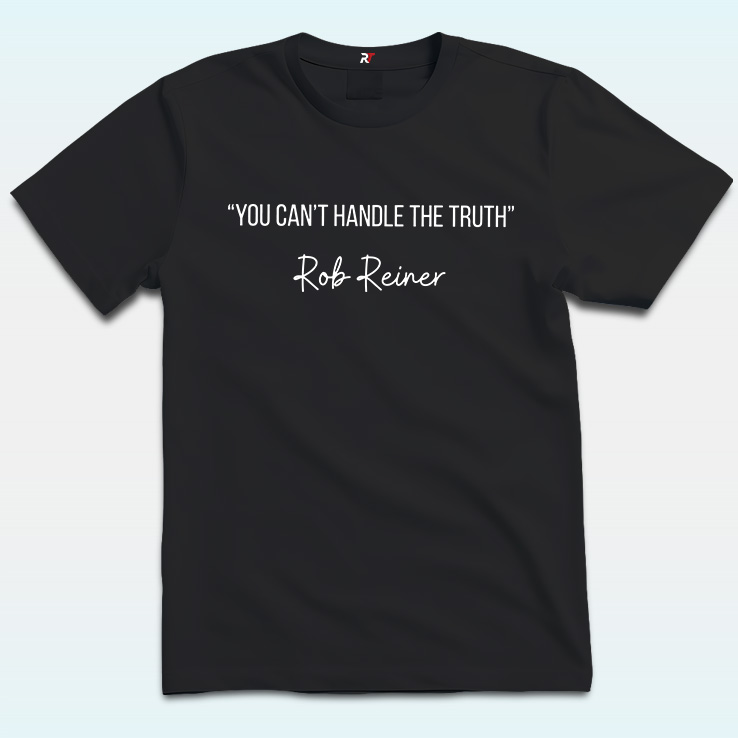 Centered on a stark black backdrop, this You Can’t Handle The Truth Shirt transforms one of cinema’s most unforgettable lines into a tribute of remembrance. The quote “You can’t handle the truth!” recalls the iconic courtroom moment from A Few Good Men, a film both produced and directed by Rob Reiner, whose work shaped generations of modern storytelling.